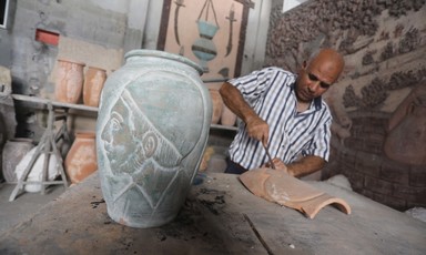 Deze beeldhouwer blaast met zijn werk de Palestijnse en Arabische geschiedenis nieuw leven in. Bassam al-Hajjar woont in Gaza stad. Hij begon met beeldhouwen toen hij nog maar 4 jaar oud was. Hij is al 30 jaar een professionele kunstenaar en heeft zo’n 500 sculpturen gemaakt. “Ik experimenteerde met papier en draad”, vertelde al-Hajjar aan The Electronic Intifada. “Ik heb mijn eerste aardewerk gedaan toen ik 14 was.” Al-Hajjar heeft deelgenomen aan tentoonstellingen op de bezette Westelijke Jordaanoever en Israël. Hij beeldhouwt alles, van Palestijnse pastorale taferelen, oude munten en historische veldslagen. Al-Hajjar’s werk toont ook de huidige belegering en militaire aanvallen van Israël in de Gazastrook.