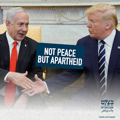 President Trump en premier Netanyahu stelden hun vredesplan voor. Dat komt er op neer dat de Israëlische wensen worden gehonoreerd en de Palestijnen hun rechten afstaan met behoud van bestaande bezettingspraktijken en het koloniaal systeem.