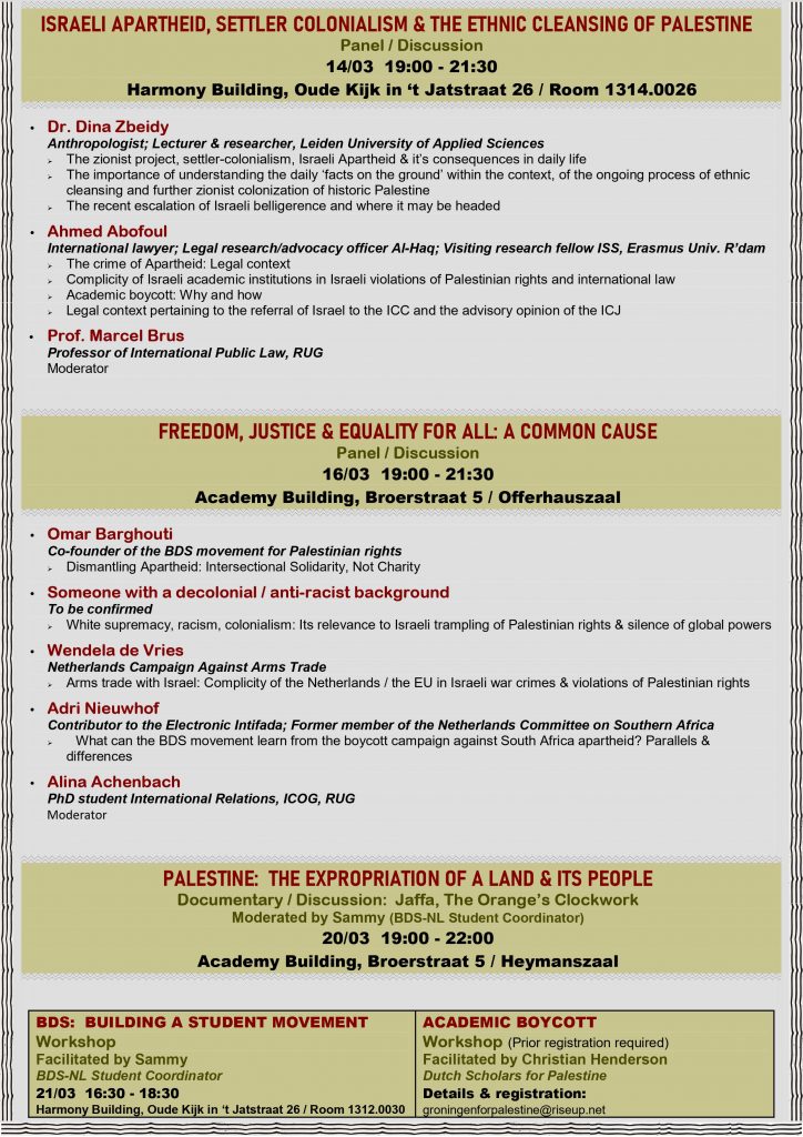 De Stichting Groningen-Jabalya wijst erop dat samenwerking met Tel Aviv niet anders kan worden gezien dan als steun aan de politiek van Israël ten aanzien van de Palestijnen. De lijst van schendingen van het internationaal recht door Israël is te omvangrijk om hier in haar geheel vermeld te worden. Wij kunnen ons beperken tot enkele voorbeelden zoals het negeren door Israël van honderden resoluties van de VN Veiligheidsraad met betrekking tot de rechten van Palestijnse vluchtelingen en de aanhoudende bouw van nederzettingen in de westelijke Jordaanoever die het stichten van een leefbare Palestijnse staat onmogelijk maakt. Deze daden zijn onder meer in de opinie van het Internationale Hof van Justitie in Den Haag in 2004 veroordeeld, echter zonder enig invloed op de politiek van Israël. De bevindingen van het Hof zijn tot nu toe, tien jaar naar de publicatie ervan nog volledig van toepassing op de huidige situatie. Daarnaast vormen de herhaalde aanvallen op Gaza met als gevolg duizenden doden en gewonden en de volledige verwoesting van de infrastructuur van de Gazastrook schendingen van het internationaal recht die door onder ander de VN commissie voor de mensenrechten zijn veroordeeld.