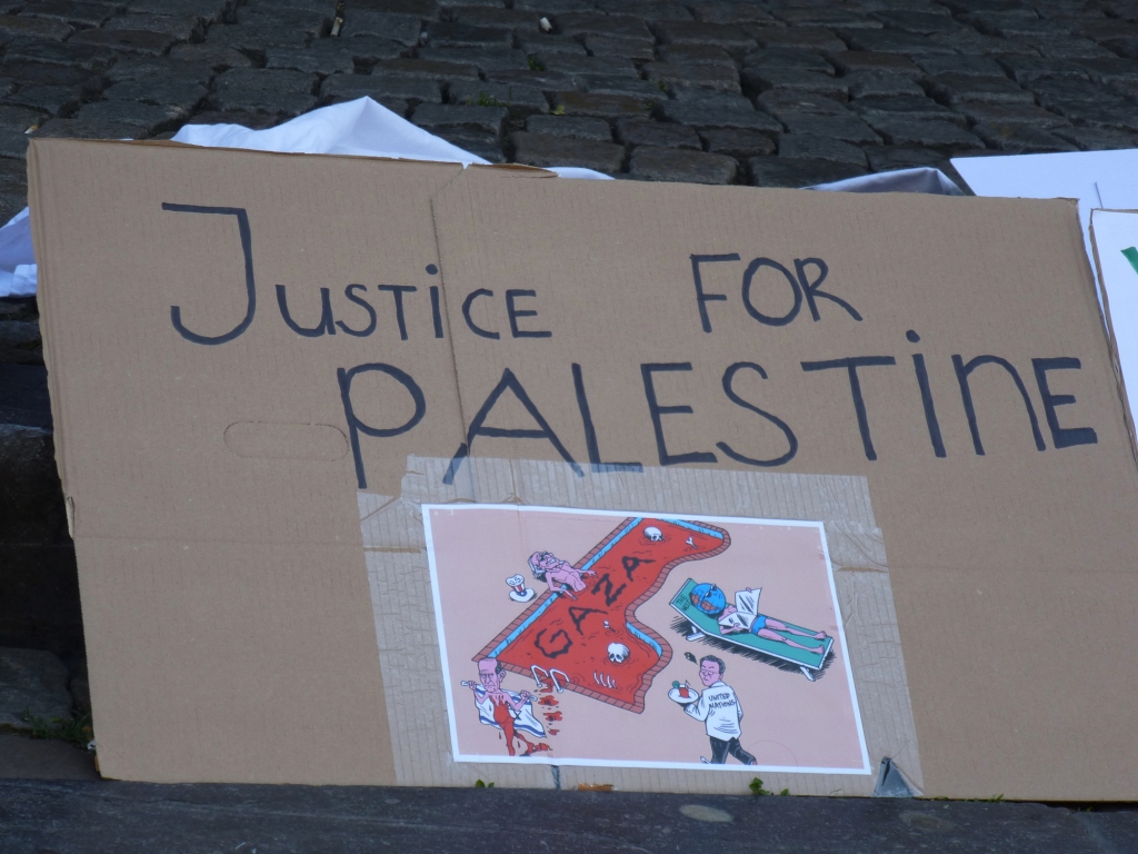 Ik heb reeds de witte vlag gerezen. Ik ben gestopt met het zoeken naar het perfecte woord om het half afgeschoten hoofd van een jongen te beschrijven terwijl zijn vader schreeuwt “Wordt wakker, wordt wakker, ik heb je een nieuw speelgoedje gekocht!”. Hoe heeft Angela Merkel, de Duitse bondskanselier, dit ook alweer verwoordt? Het recht van Israël om zichzelf te verdedigen.