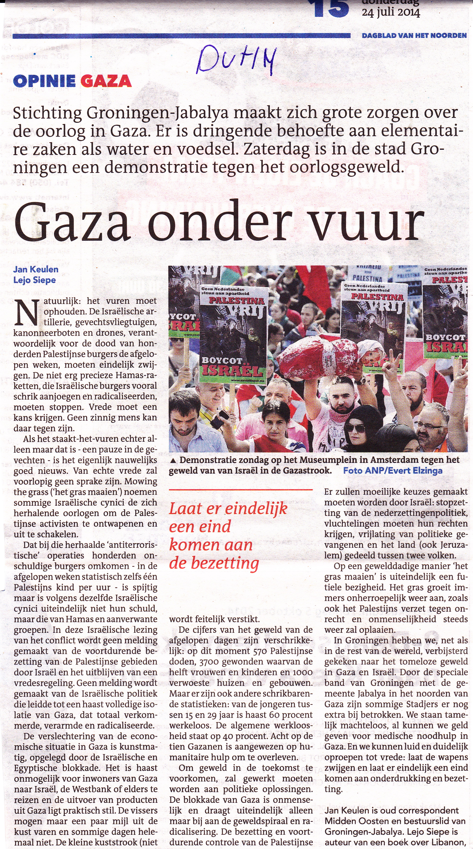 Ik ben het beu om mijzelf voor te liegen, alsof ik vanuit afstand, via telefoon, voldoende informatie kan verzamelen om degelijk te kunnen berichten over wat de journalisten ter plaatse aan het beschrijven zijn. Desondanks, het is cruciale informatie voor een klein deel van de Hebreeuwssprekende bevolking. Zij richten zich doorgaans tot buitenlandse verslaggeving en websites om dergelijke berichtgeving te vinden. Zij zijn niet afhankelijk van wat hier geschreven wordt om bijvoorbeeld te kunnen horen over de korte levens van Jihad (11) en Wasim (8) Shuhaibar, of dat van hun neefje Afnan (8) uit de Sabra wijk in Gaza. Net zoals mij konden ze dit vernemen via het verslag van de Canadese journalist Jesse Rosenfeld in The Daily Beast.