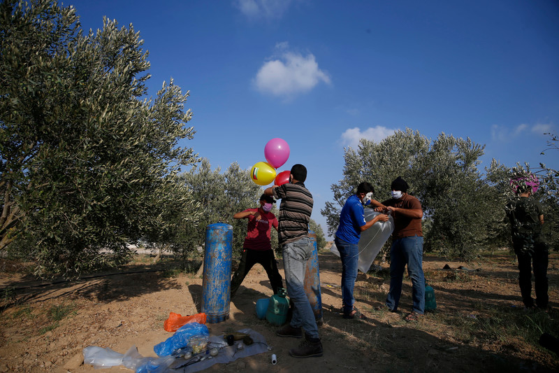 Gefocust en stil werkten de mannen een uur op instructies van Abu Karam, de leider van deze kleine groep die alleen wordt geïdentificeerd door zijn nom de guerre. Het vullen van condooms met heliumgas duurde tot net na vijf uur ’s ochtends voordat ze klaar waren. Binnenkort, als de wind het toelaat, laten de mannen een flink aantal ballonnen los met brandende vodden. Het idee? Om ze vanuit Gaza over de grens te sturen en – als de omstandigheden gunstig zijn – misschien een brand te veroorzaken of op zijn minst een verstoring te veroorzaken.