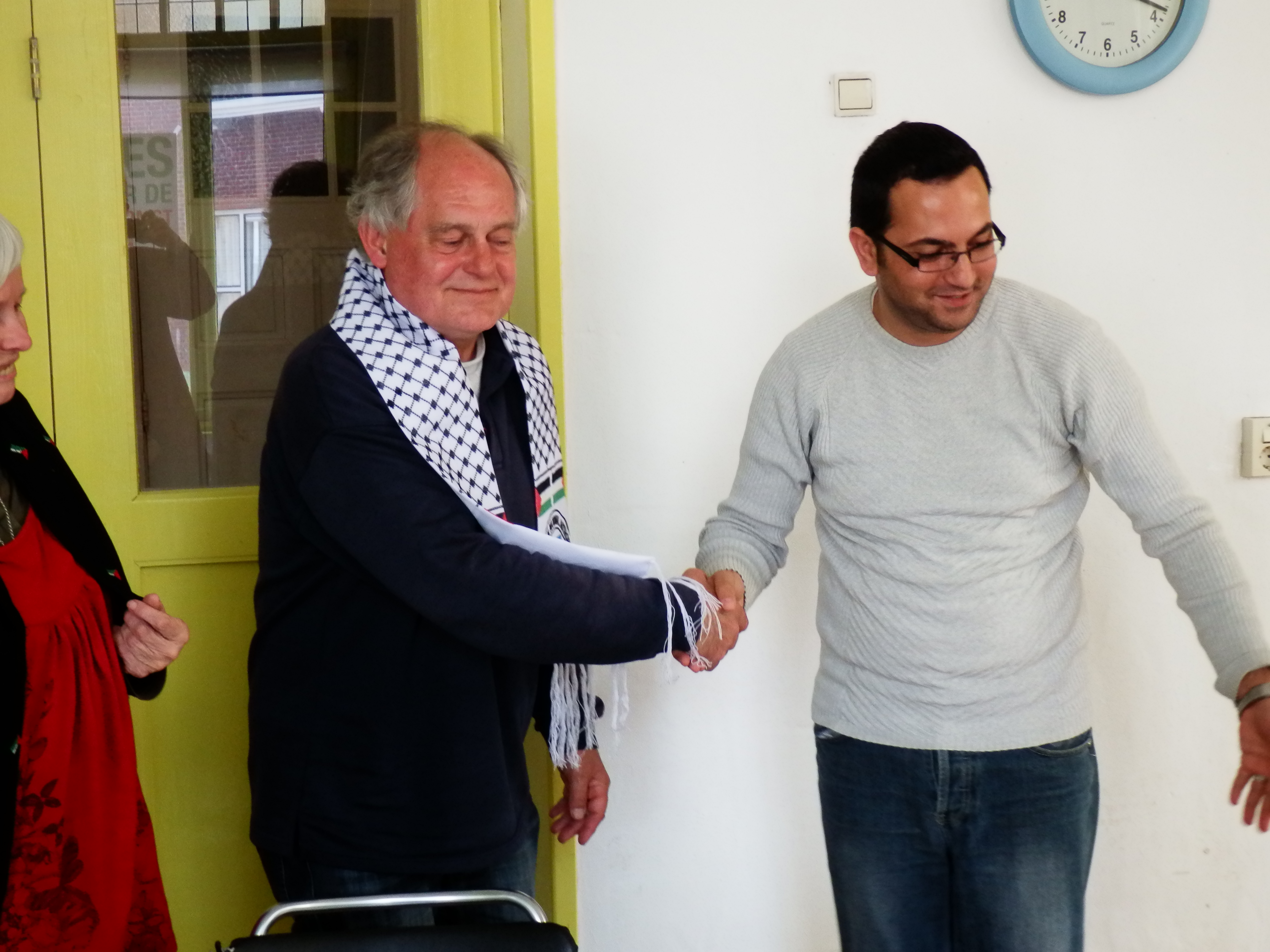Dabboor neemt de honneurs waar. Hij sprak uitvoerig met het stichtingsbestuur over de situatie van de gemeente Jabalya, over het Nama’a college en over de problemen waar de gemeente al sinds jaar en dag mee kampt namelijk gebrek aan vers drinkwater en ophopende afvalbergen.