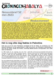 Inhoud nr 52 Het is nog elke dag Nakba in Palestina Sterke wil en vastberadenheid zijn het handelsmerk van gehandicapten in Gaza Inspirerende lezingen en discussies tijdens de Israeli Apartheid Week in Groningen Omar Barghouti: “BDS, Intersectioneel verzet tegen Israëls regime van vestigingskolonialisme en apartheid” Interview met cartoonist Mo Qasem: Overlevenden herdenken recensie Nakba film Farha