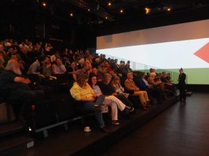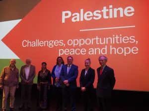 Een grote en diverse groep van zowel studenten als Stadjers was op komen dagen om te luisteren naar verschillende sprekers. De avond werd geopend door de gemeente en Jan Keulen, die de discussies leidde en sprekers aan het publiek voorstelde. Groningen-Jabalya gaf een toelichting over de banden tussen de twee gemeentes en hoe er door de jaren heen samen is gewerkt aan een betere toekomst voor jongeren in Gaza. Hierop volgde een toespraak van H.E. Sulaiman, die inging op de recente ontwikkelingen en haar hoop op gerechtigheid en vrede voor de Palestijnse bevolking. Hierbij sprak ze niet alleen over het nieuws, maar ook over haar persoonlijke leven en haar wensen voor haar kinderen, gehuld in een traditioneel geborduurde jurk. Erik Ader, voormalig ambassadeur, vertelde over zijn bijzondere familiegeschiedenis, verder beschreven in zijn boek Oorlogen en oceanen. Net als zijn vader zet hij zich in voor een bevolkingsgroep die onrecht wordt aangedaan.